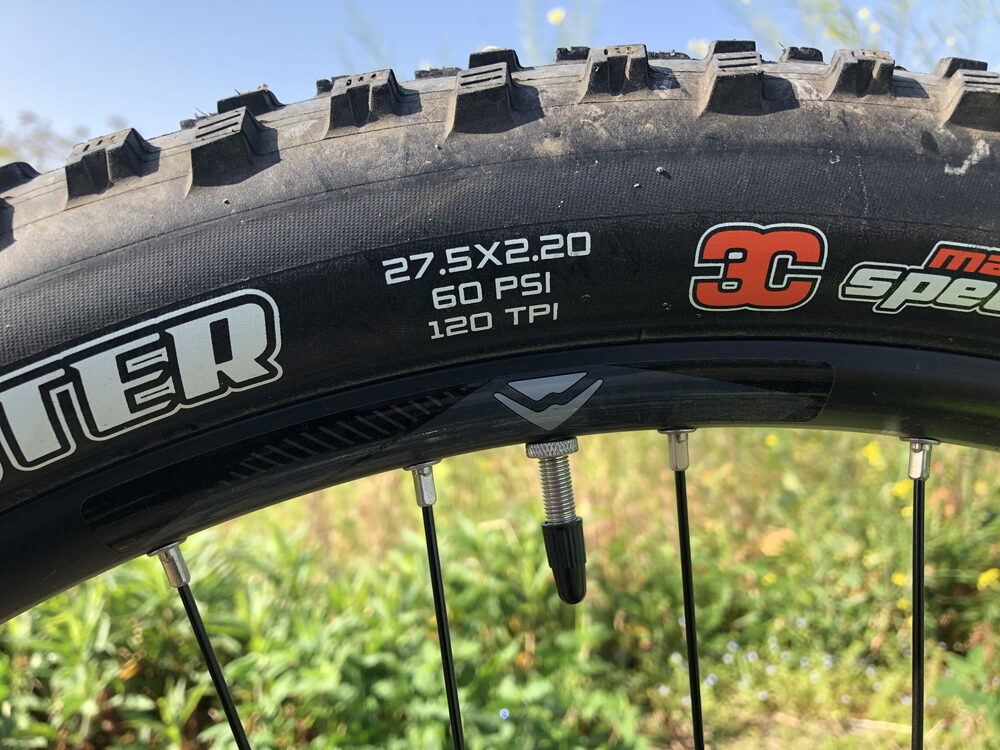 標準で装着されていたタイヤは、27.5×2.20。典型的なマウンテンバイクのブロックタイヤです。
