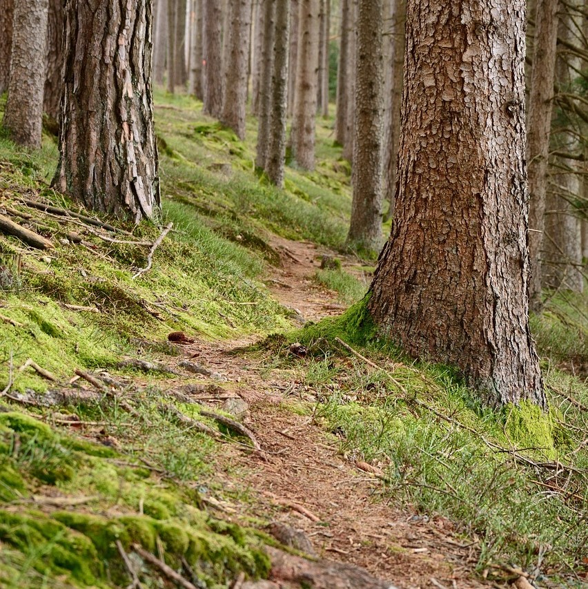 下の写真のような、木の根が這っていたり、大きめな石があったりするトレイルを走っていたのですが・・・