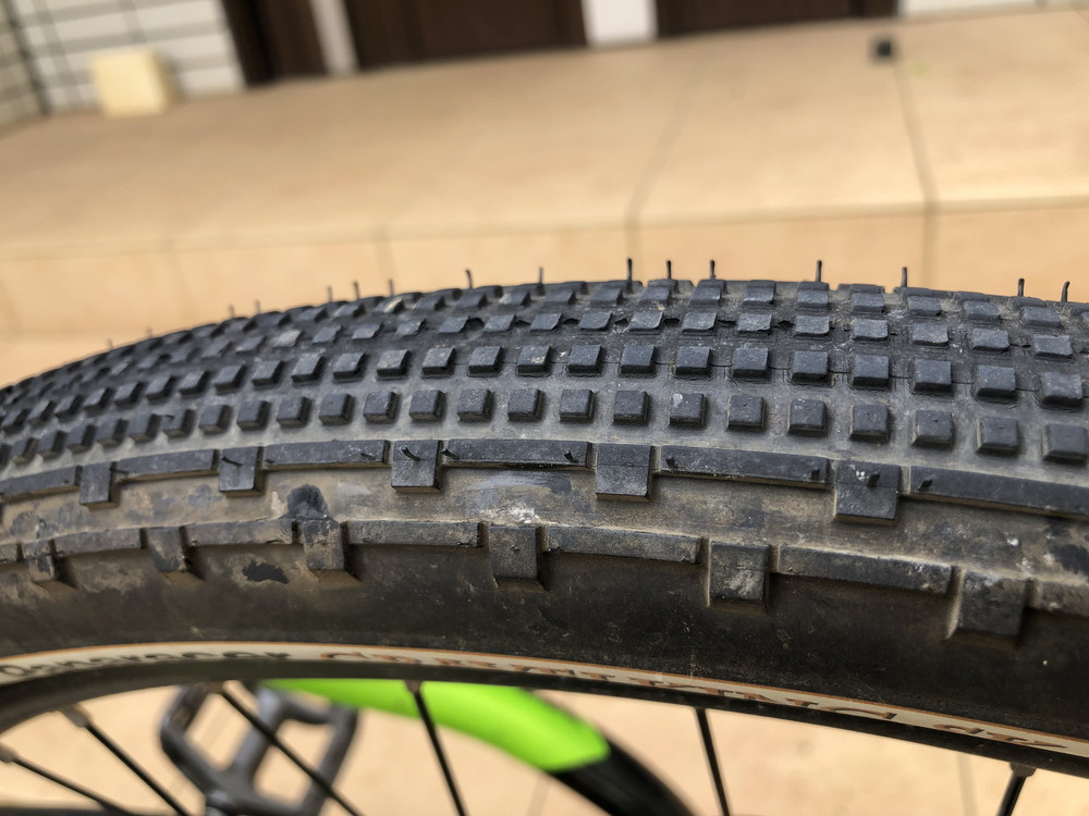 タイヤ幅を2.10⇒1.90へ少し細めをチョイスしています。グラベル用とあって、ブロックが小さくなって配置されていますね。