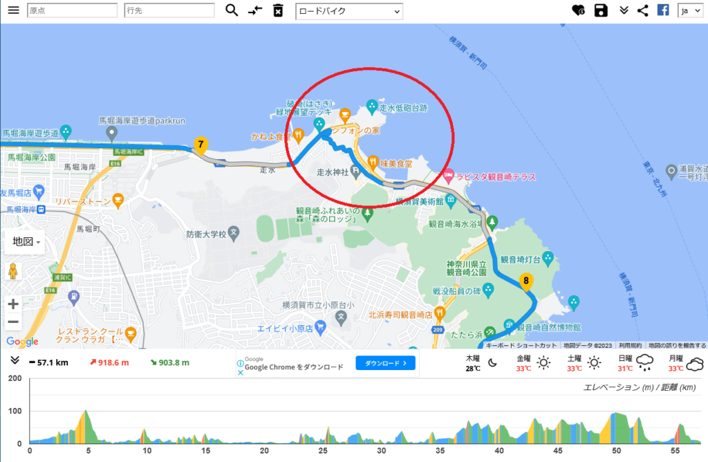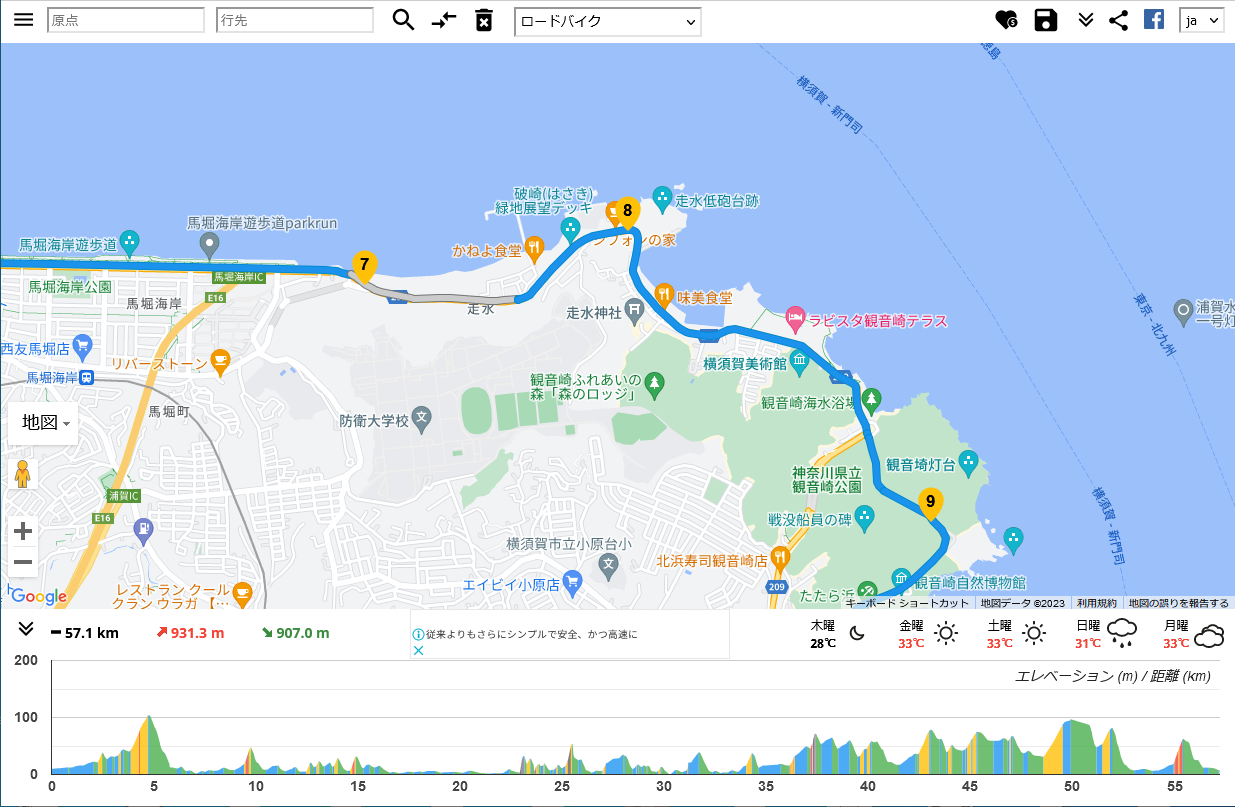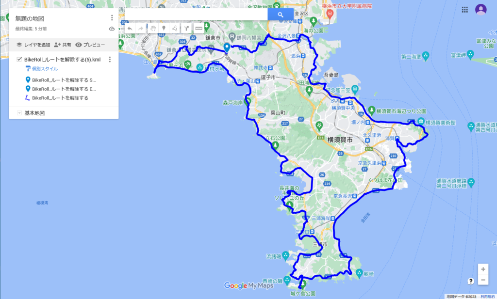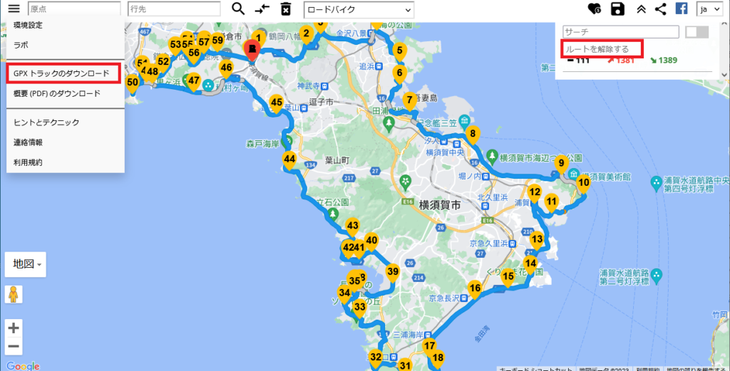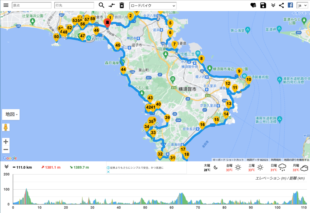 三浦半島一周ルートで、無理くり多めに中継点を登録してみた結果・・・