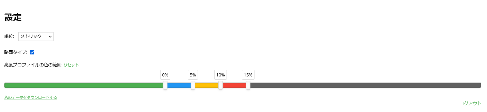 斜度(%)の区分は、バーを左右にスライドすることで自由に変更する事ができます。