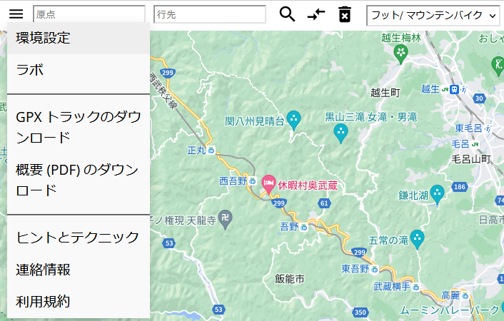 画面左上にある[三]> GPXトラックのダウンロード を選択すると、データがPC内に保存できます。
