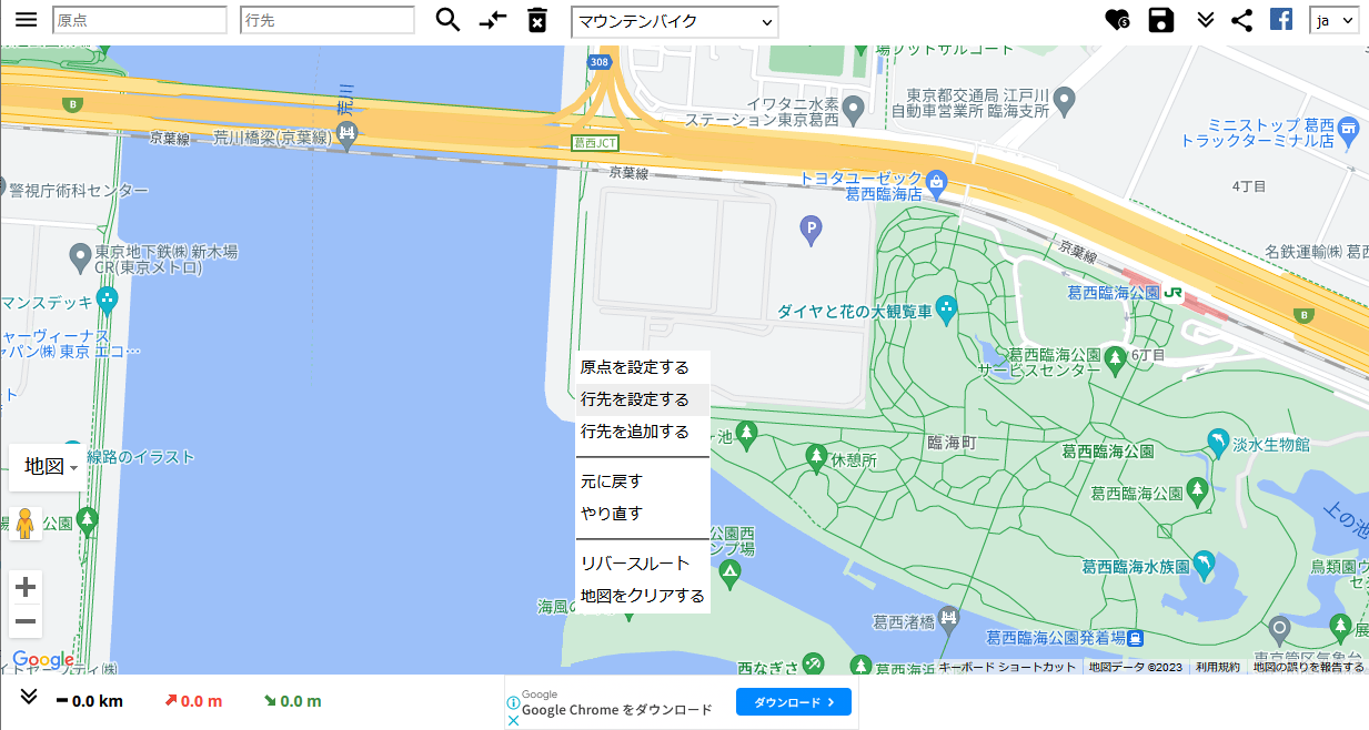 終点は、東京都の「葛西臨海公園」近くとしました。