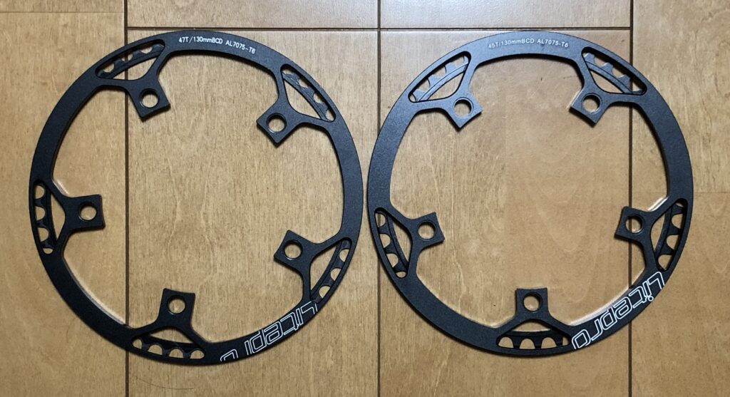 チェーンリング「47T」と「45T」の大きさを比較してみたが