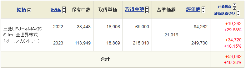 取引銘柄は「eMAXIS Slim 全世界株式(オール・カントリー)」のみである。