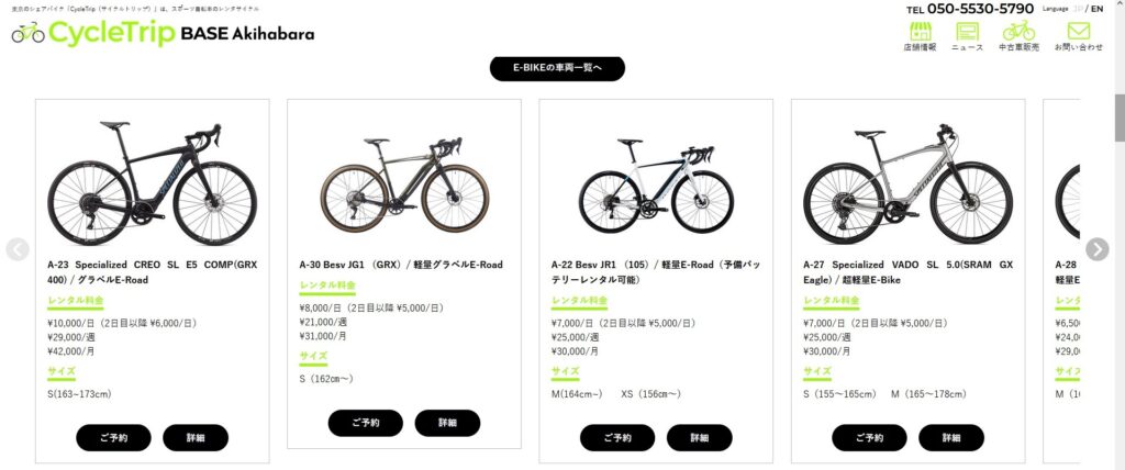 わたしは東京・秋葉原にある「CycleTrip(サイクルトリップ)」さんでレンタルしてきました!