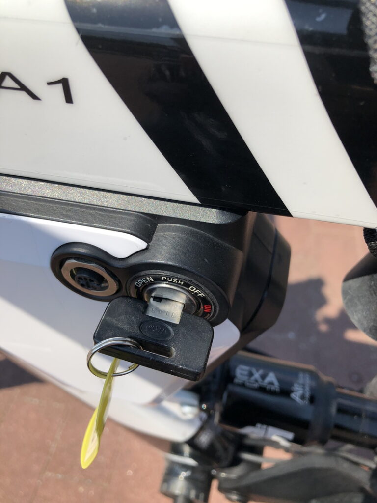 バッテリーに鍵を差して、電源をONにします。