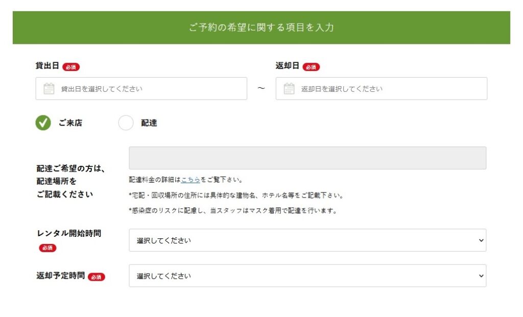 レンタルは下記のHPから予約ができます。↓