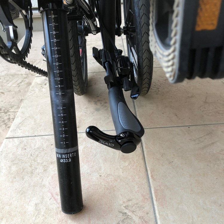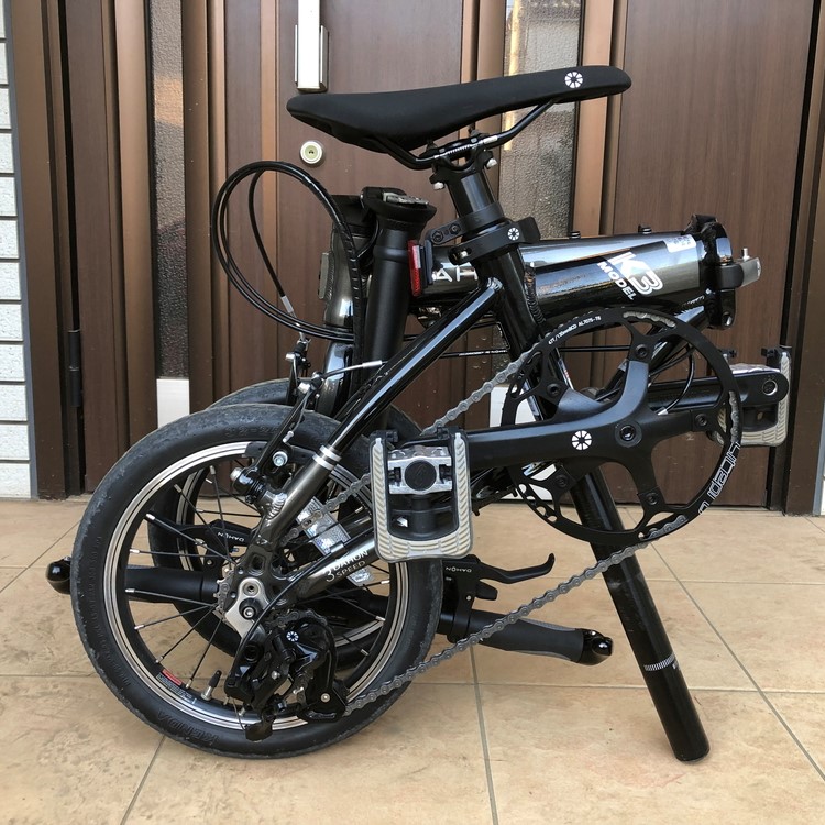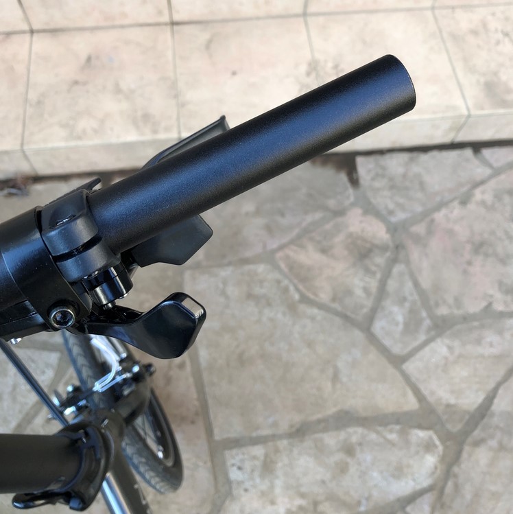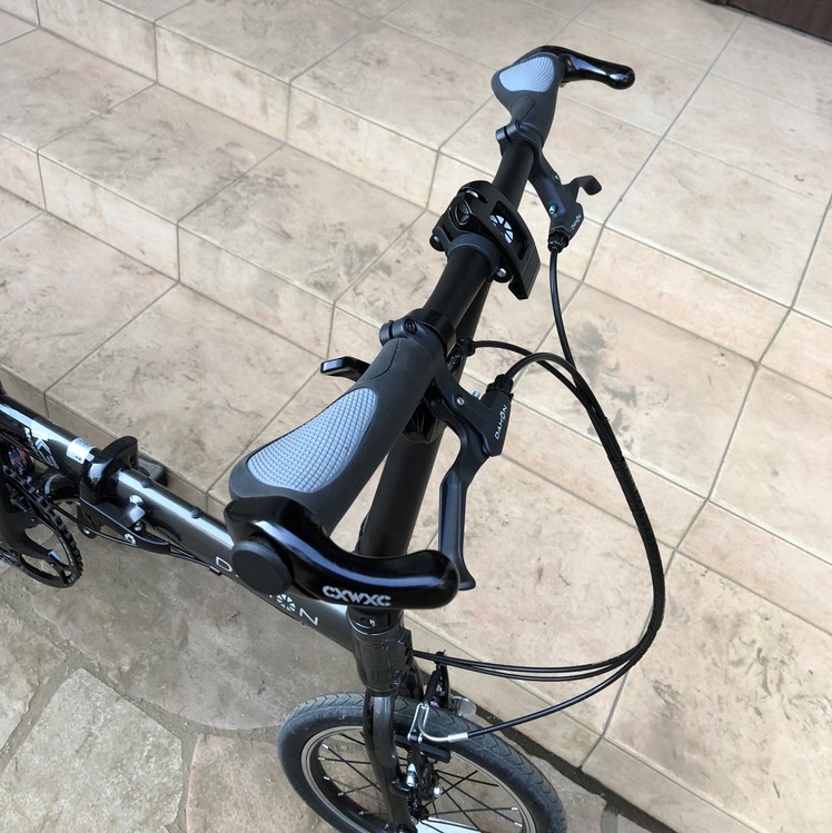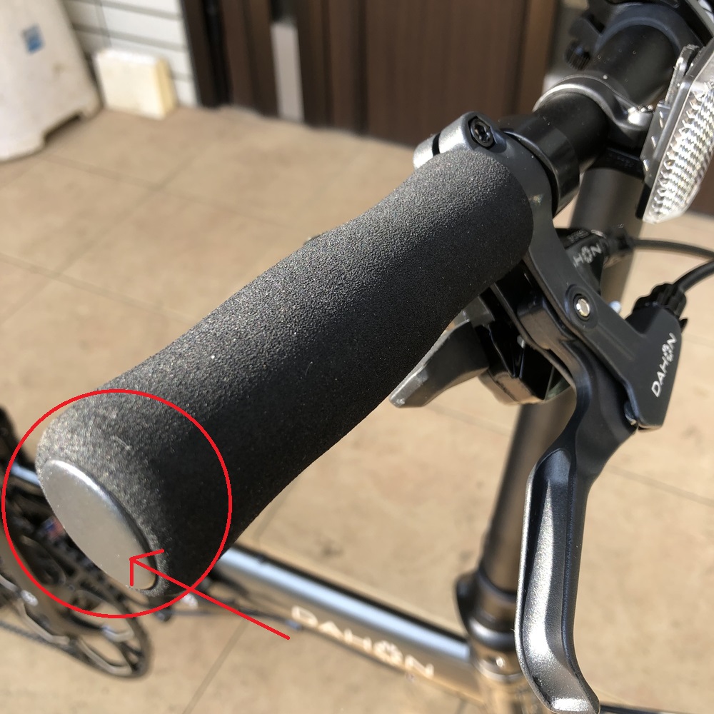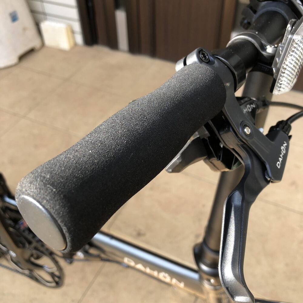 「DAHON K3」のハンドルグリップは、薄いスポンジみたいな感触になっているんですね。とりわけ可もなく不可もなくっていう感じでしょうか。。
