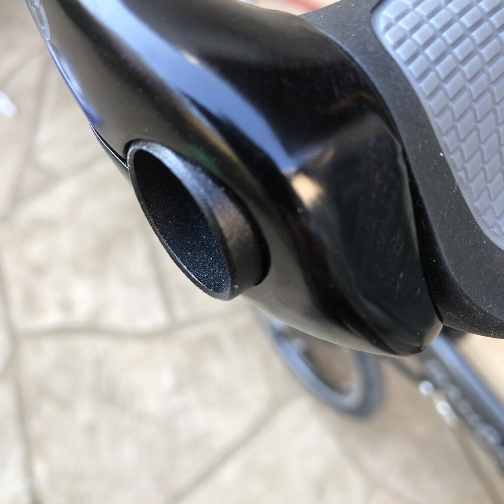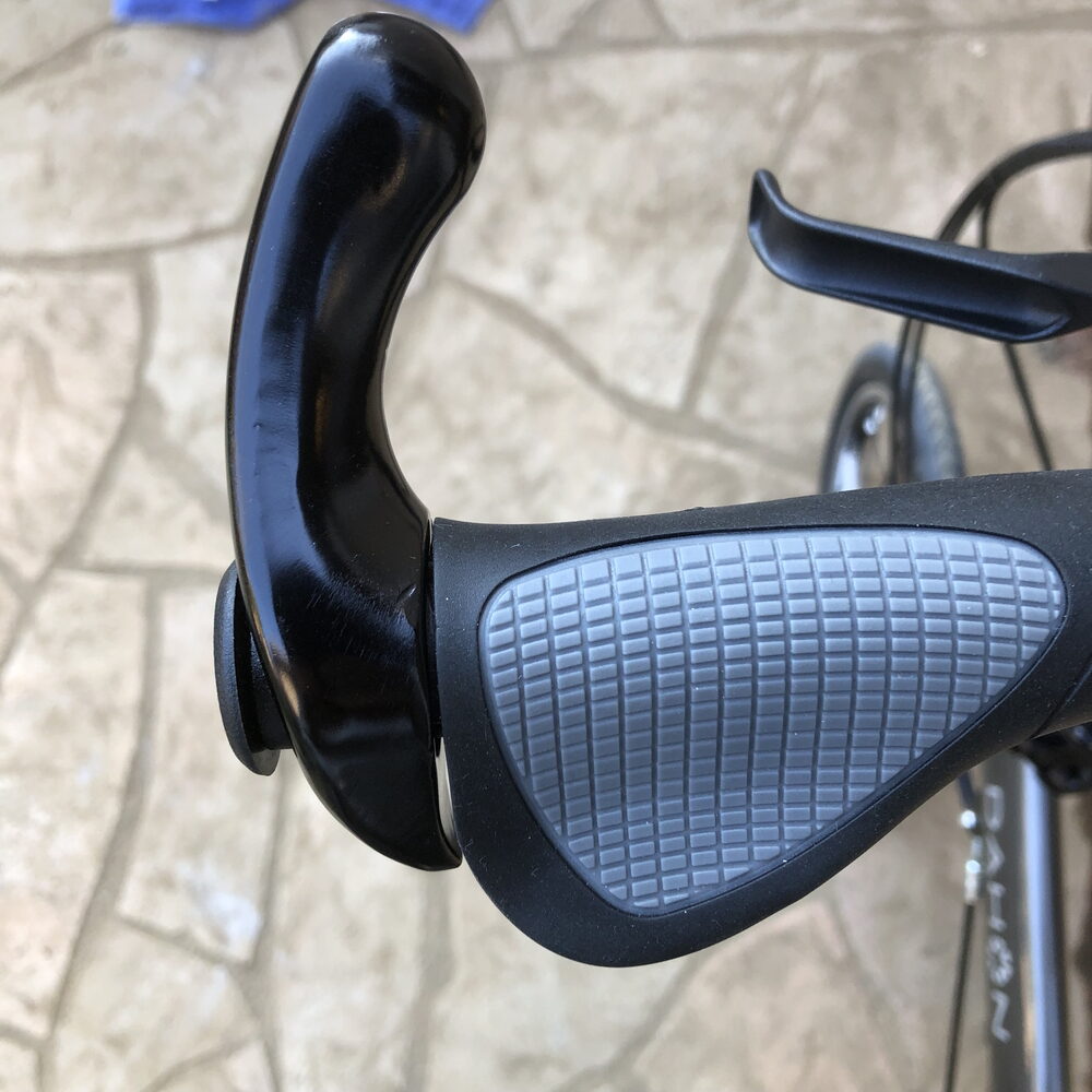 そこで、サイドバーが活躍。サイドバーを握る事によって手の甲が横向き・親指が上の向きになり自然体になります。これだけでも、自転車の疲れが軽減されます。